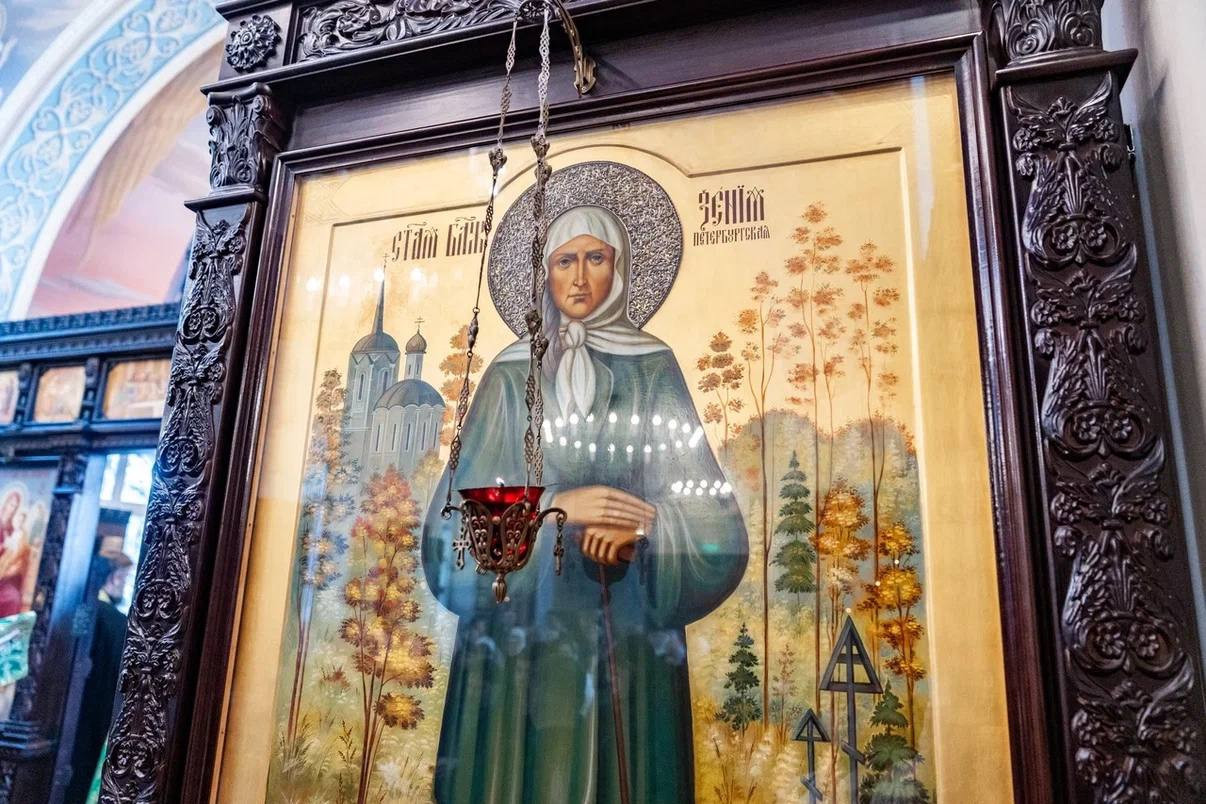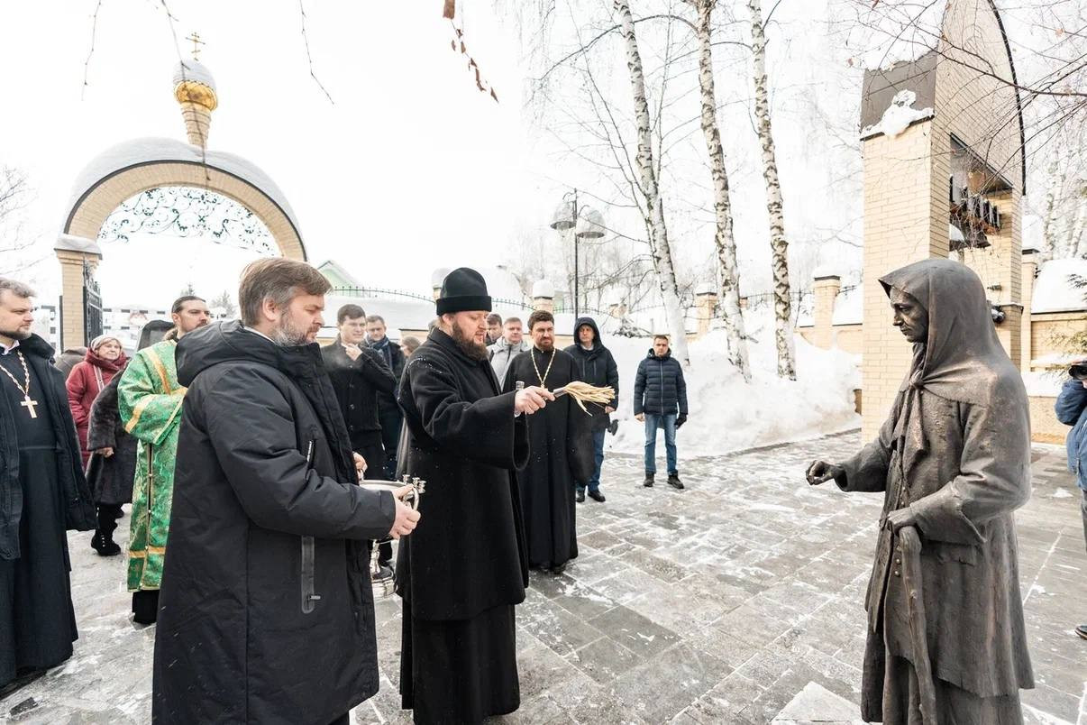 После Божественной литургии архиепископ Аксий совершил чин освящения памятника блаженной Ксении Петербургской, установленного на территории храма. Памятник является точной авторской копией монумента на могиле блаженной Ксении на Смоленском кладбище города Санкт-Петербурга, созданного скульпторами Вадимом Сазоновым и Николаем Ивановым.